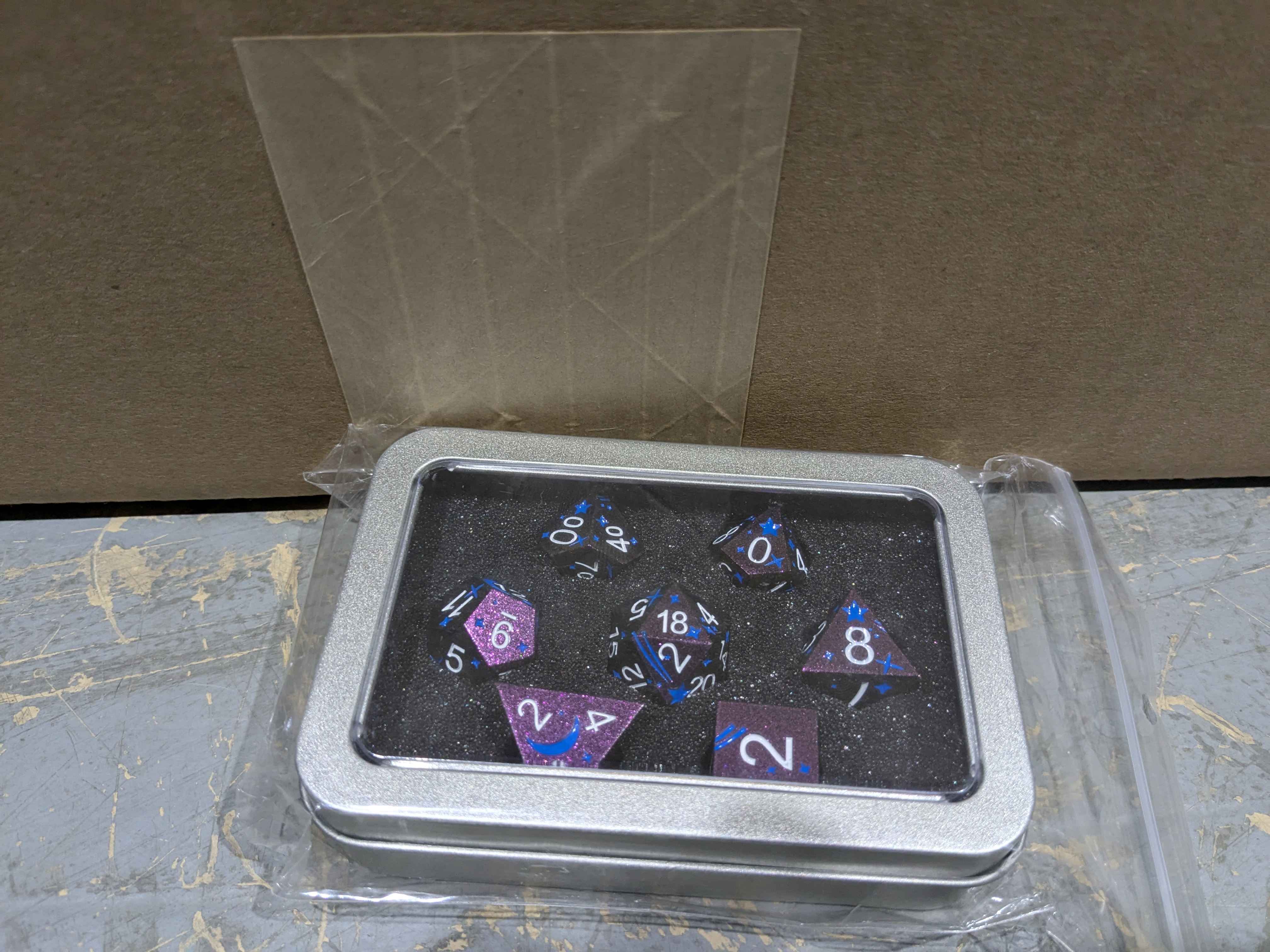These premium metal dice ship in their retail packaging to keep them safe and sound.