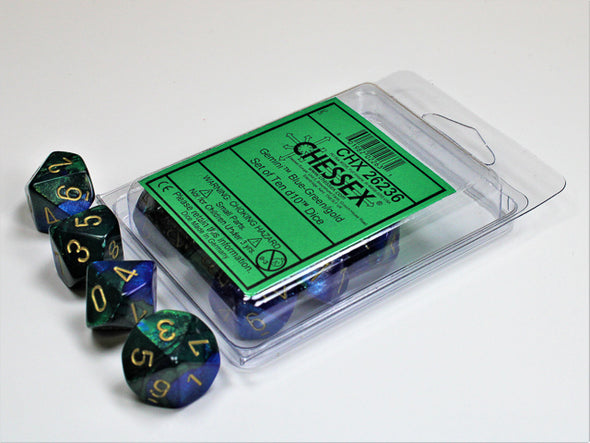 CHX26236 Chessex - 10D10 - Gemini - Blue-Green/Gold is available at 401 Games Canada! You can find lots of other Dice products as well as more great items from Chessex!