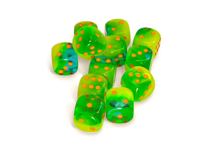Chessex - 12D6 - Gemini - Plasma Green-Teal/Orange Luminary