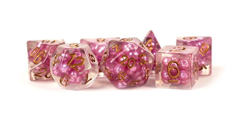 MDG - Resin Poly Dice Set - 16mm Pearl: Pink w/ Copper Numbers