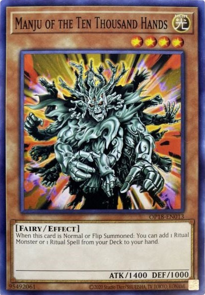 Manju of the Ten Thousand Hands - OP18-EN013 - Common is available at 401 Games Canada! You can find lots of other Yugioh Singles products as well as more great items from OTS Tournament Pack 18!