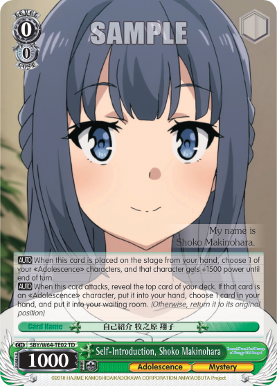 Self-Introduction, Shoko Makinohara - SBY/W64-TE02 - Trial Deck and more Weiss Schwarz Singles from Rascal Does Not Dream of Bunny Girl Senpai are available now at 401 Games!