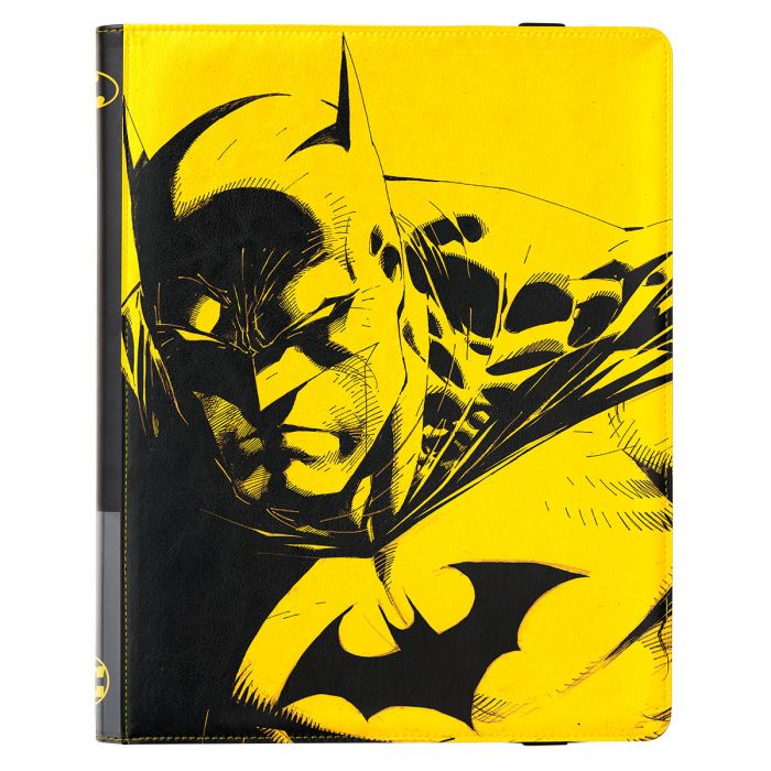 Striking yellow Batman artwork by Jim Lee on the back and front of an elegant black portfolio. 20 pages with 18 side-loaded card pockets for a total of 360 card slots.