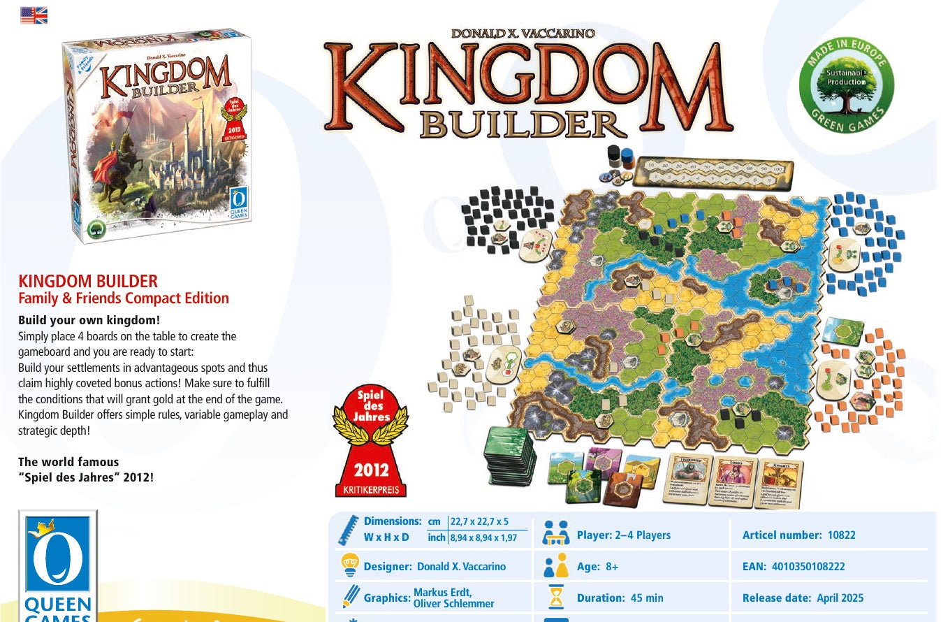 In Kingdom Builder, the players create their own kingdoms by skillfully building their settlements, aiming to earn the most gold at the end of the game.