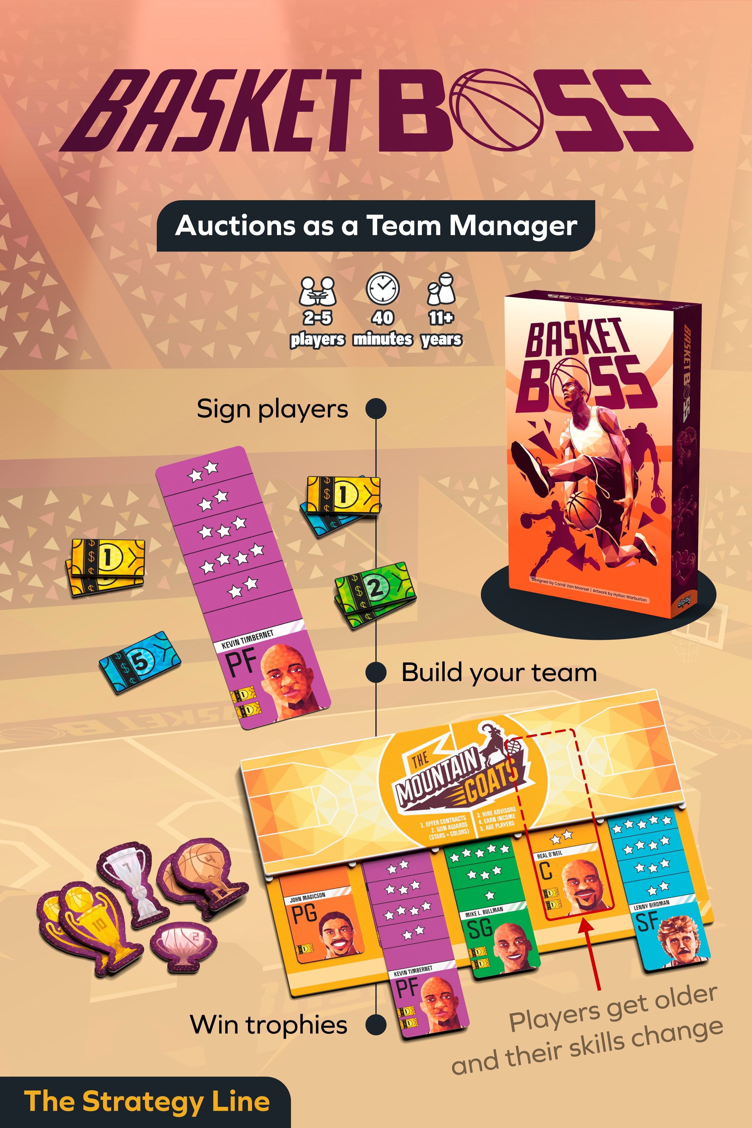 Basketboss is an auction game where each season you’ll be responsible for managing all the complexities of a professional basketball team.