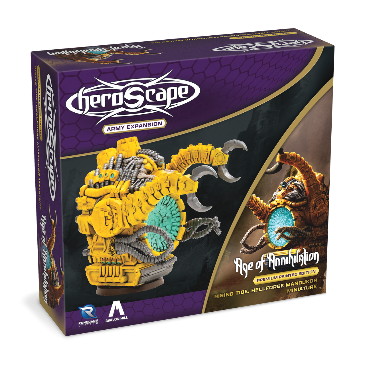 This expansion contains 1 highly detailed miniature! It is fully compatible with all Heroscape Master Sets and Expansions. As part of the Rising Tide story arc, Hellforge Mandukor introduces a unique combination of raw power and tactical versatility, making it a formidable addition to any army.