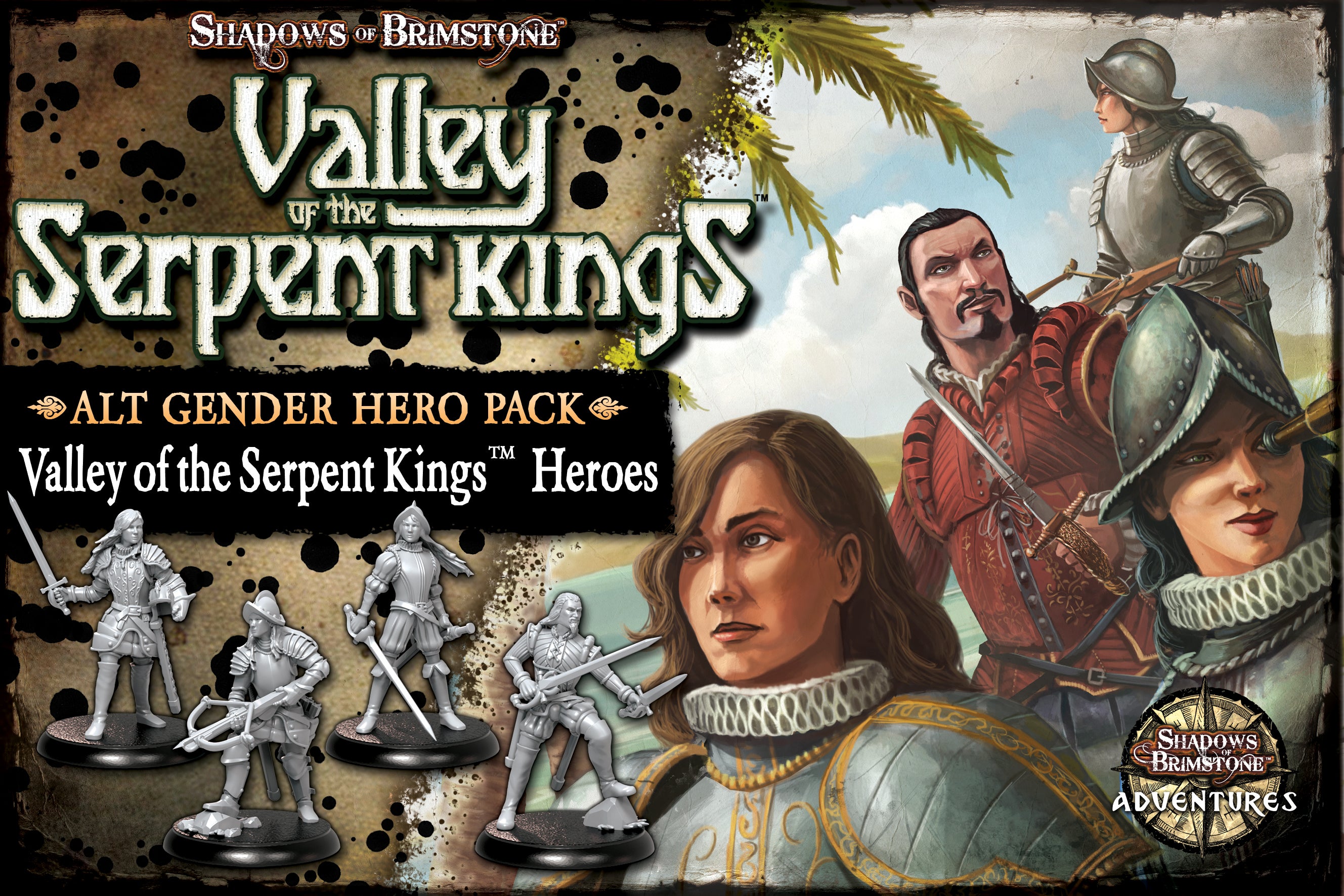 This Alt Gender Hero Pack contains everything you need to add these four Spanish Explorer Team Heroes to your games of Shadows of Brimstone. Included are the Miniatures for the Alternate Gender versions of the Conquistador Heroes originally found in the Valley of the Serpent Kings Adventure Set - El Capitan, Explorer, Duelist, and Soldier, as well as all of the cards, Team Abilities, Hero Character Sheets, Conquistador Upgrade Chart, and counters needed to play as these Heroes.