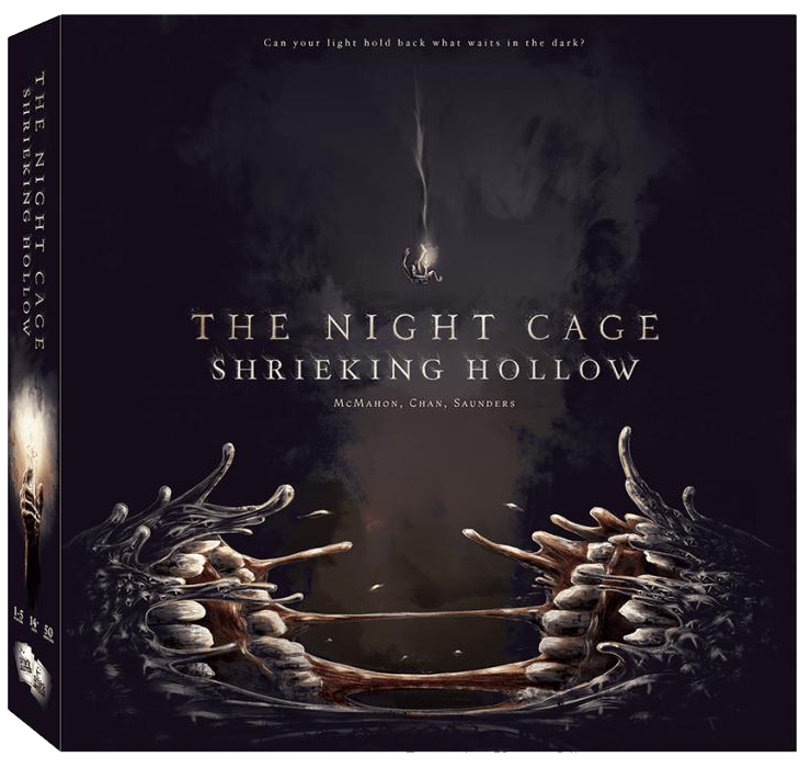 The Shrieking Hollow is an expansion that adds a new threat and a new space to explore within The Night Cage. Pits now connect prisoners to the Hollow, where The Other lies in wait. Over the course of play, The Other will rise up out of the Hollow and attack the prisoners, destroying any part of the maze it encounters. If the prisoners are brave, they can leap into a pit and fall to the bottom of the Hollow where the dim light of their candles will stop its advance, temporarily. However, they can't hold it back forever, and prisoners that stay too close to The Other will be attacked when it lurches toward the flickering light it despises.