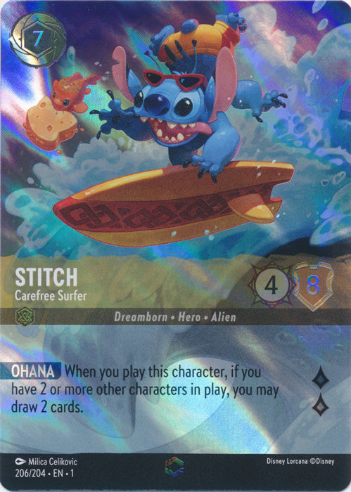 Stitch (Carefree Surfer) - 206/204 - Enchanted is available at 401 Games Canada! You can find lots of other Disney Lorcana Singles products as well as more great items from The First Chapter