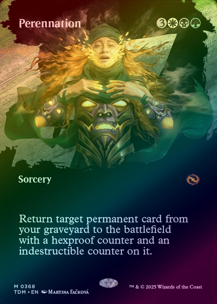Return target permanent card from your graveyard to the battlefield with a hexproof counter and an indestructible counter on it.