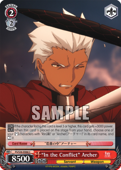 "In the Conflict" Archer is available at 401 Games Canada! You can find lots of other Weiss Schwarz Singles products as well as more great items from Fate/stay night [Unlimited Blade Works] Vol. II!