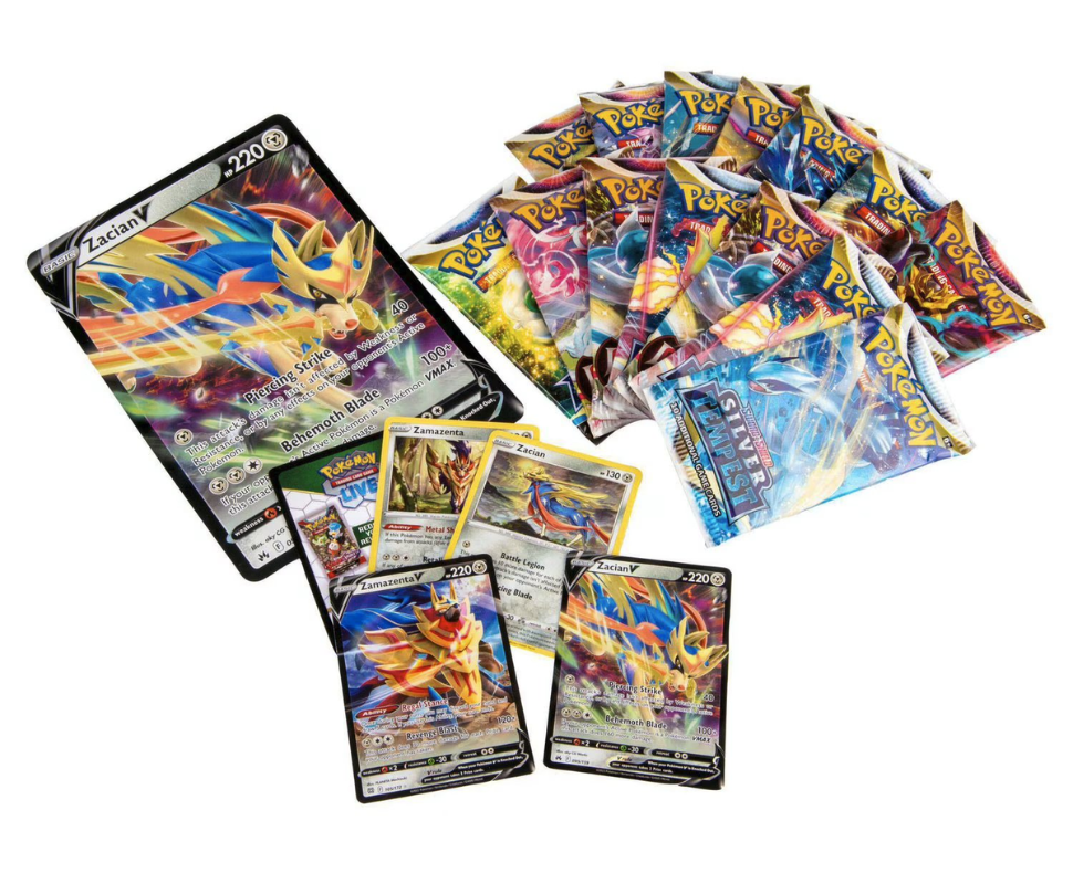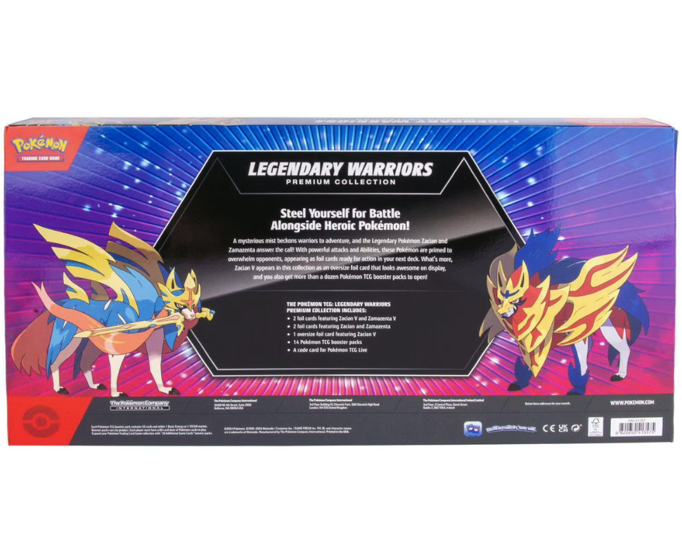 A mysterious mist beckons warriors to adventure, and the Legendary Pokémon Zacian and Zamazenta answer the call! With powerful attacks and Abilities, these Pokémon are primed to overwhelm opponents, appearing as foil cards ready for action in your next deck. What's more, Zacian V appears in this collection as an oversize foil card that looks awesome on display and you also get more than a dozen Pokémon TCG booster packs to open!