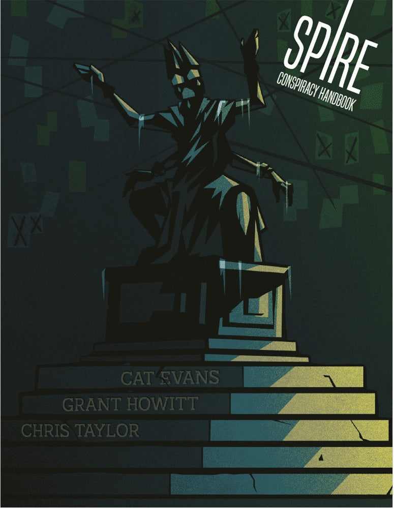 Secrets and Lies in the City of Spire. This slim volume contains rules and guidance on making your own bespoke secret society using some of the non-player characters and locations detailed within. Characters such as: Cacophony Gryndel, an amorous widow whose hobbies include sponsoring revolutionary organisations; Brigadier Arneau Destera, a decorated war hero desperate to dethrone the Council; Maji Levecha, an unmasked high elf in charge of a non-Euclidian getaway elevator; Professor Margot Arkemton, a gnoll scholar visiting Spire thanks to some truly labyrinth visa permissions; Father Gavel, an itinerant priest of the god of Breaking and Entering; Captain Calvy Lejeune, a teenager who was put in charge of a city guard garrison as a joke. Each NPC has sets of tables packed with motivations, flaws, leverages, assets and associates to help build a scenario with an emphasis on investigation and player choice; once everything’s set up, it’s up to your players to infiltrate and subvert the organisation to their own ends. Each character and location has been lovingly illustrated by Rowan MacColl.
