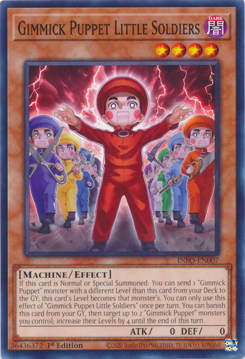 Gimmick Puppet Little Soldiers - INFO-EN007 - Common - 1st Edition is available at 401 Games Canada! You can find lots of other Yugioh Singles products as well as more great items from The Infinite Forbidden 1st Edition!
