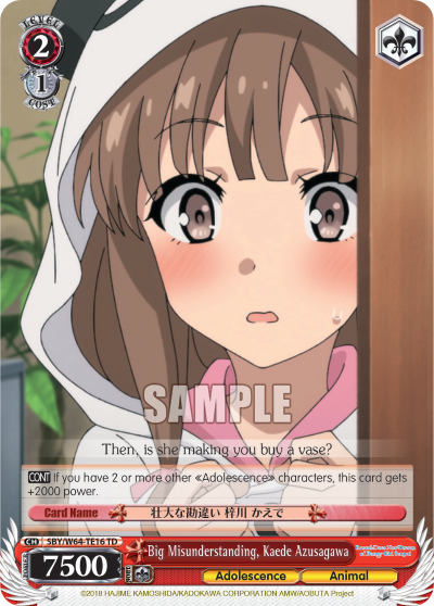 Big Misunderstanding, Kaede Azusagawa - SBY/W64-TE16 - Trial Deck and more Weiss Schwarz Singles from Rascal Does Not Dream of Bunny Girl Senpai are available now at 401 Games!