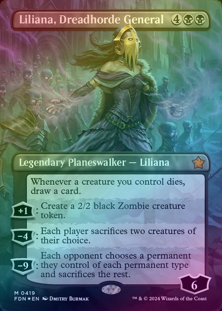 Liliana, Dreadhorde General - Borderless (Mana Foil) (FDN)