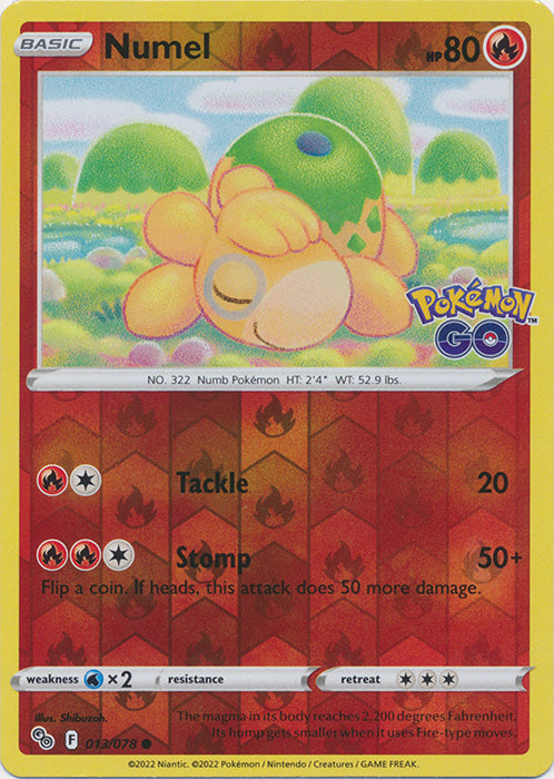 Numel - 013/078 - Common - Reverse Holo is available at 401 Games Canada! You can find lots of other Pokemon Singles products as well as more great items from Sword & Shield: Pokemon GO!