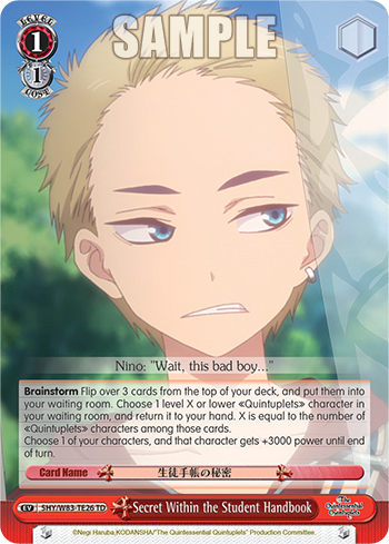 Secret Within the Student Handbook (TD) is available at 401 Games Canada! You can find lots of other Weiss Schwarz Singles products as well as more great items from The Quintessential Quintuplets!