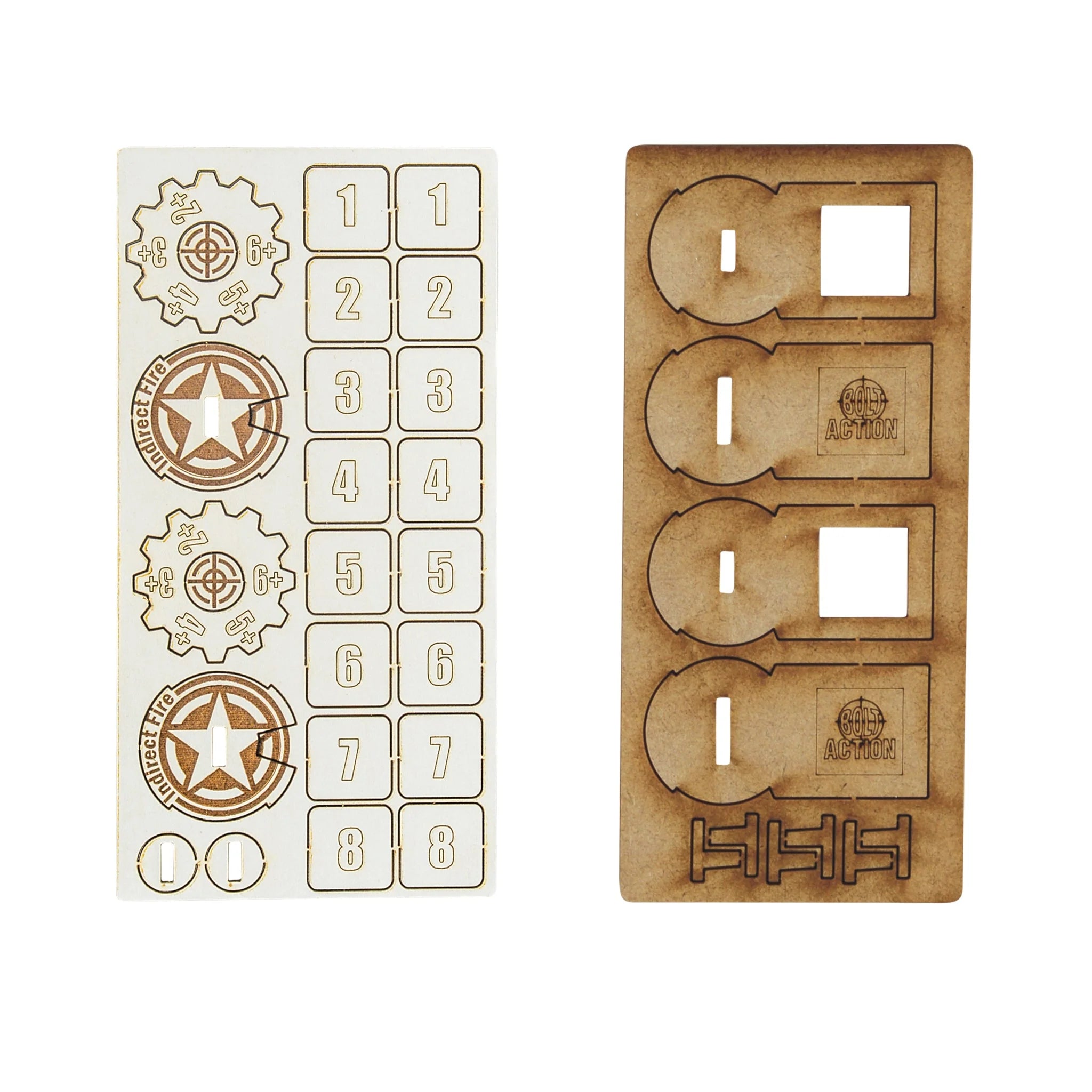 Made of high-quality laser-cut MDF and simple to assemble, these durable markers, etched with a United States Army design, are an essential addition to every gaming bag! Pack contains two zeroing in markers.