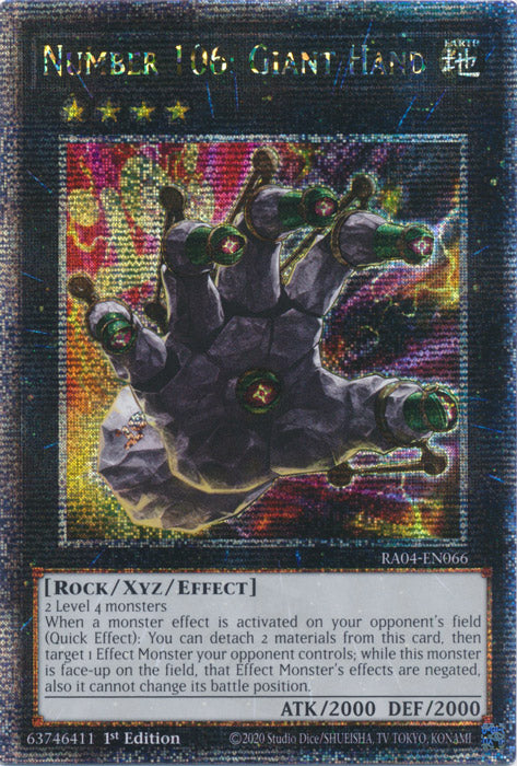 Number 106: Giant Hand - RA04-EN066 - Quarter Century Secret Rare - 1st Edition