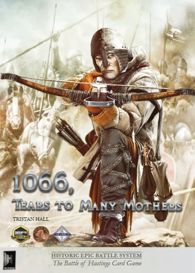 1066, Tears to Many Mothers is an asymmetric, competitive tactical card game in the style of Magic the Gathering, but non-collectable. In other words, whilst we do have plans for other theatres of conflict as future stand-alone sets, you will receive the complete game in the box. This card game, designed by Tristan Hall, follows the momentous events of that seismic year in English history. Each player, as either Normans or Saxons, musters troops and resources to overcome the various obstacles in their way before their two armies clash on the battlefield at Hastings.