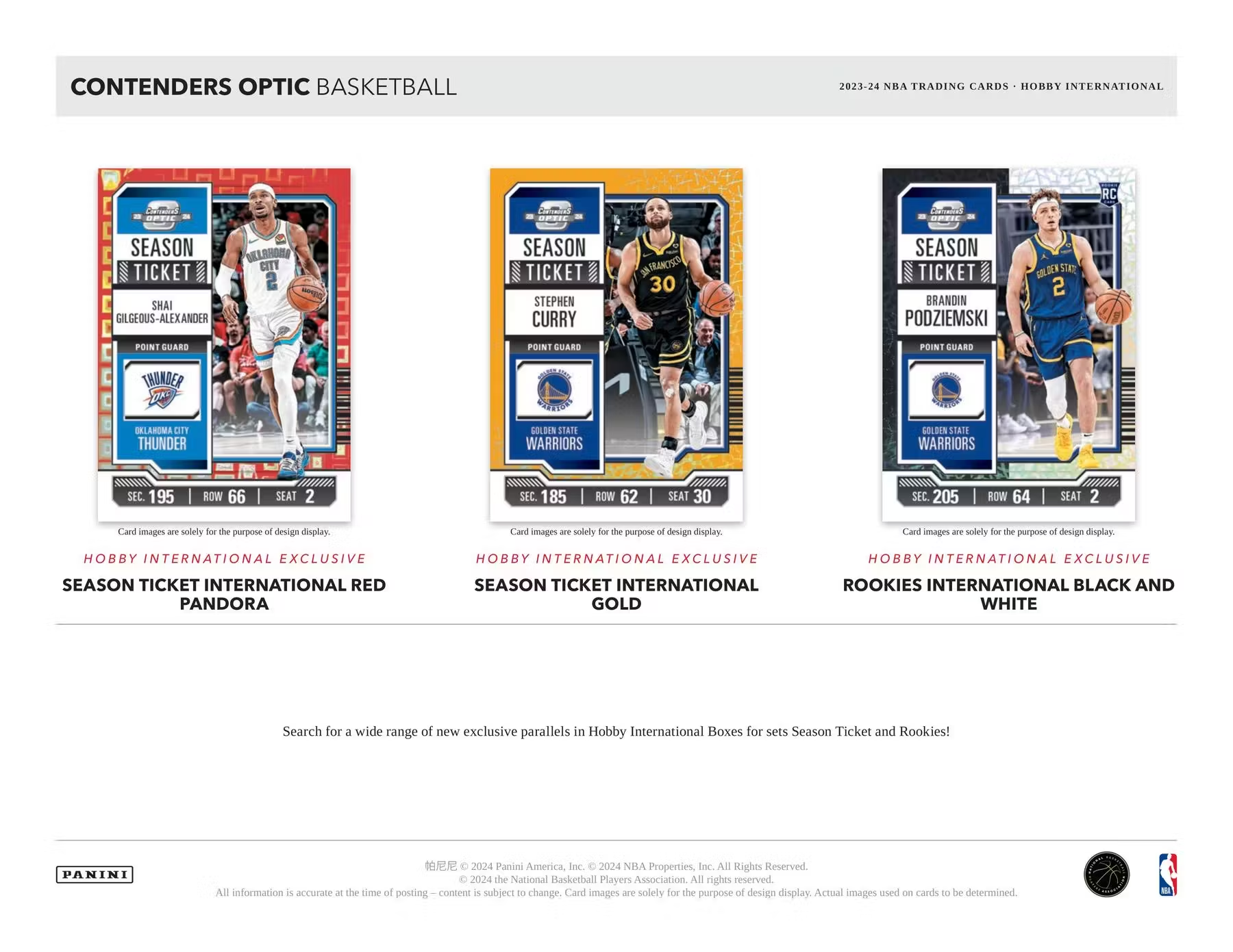 Search for a wide range of new exclusive parallels for Season Ticket and Rookies sets in International Red, International Blue (#'d/45), International Black and White (#'d/25), International Gold (#'d/10), International Jade Cracked Ice (#'d/5) and International Red Pandora (One-of-One)!