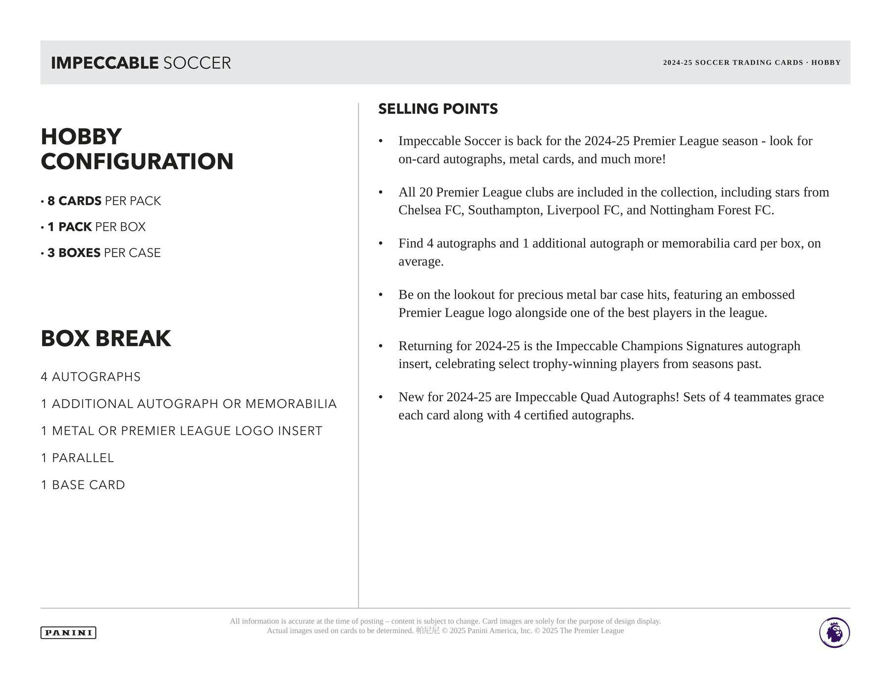 Impeccable Soccer is back for the 2024-25 Premier League season - look for on-card autographs, metal cards, and much more!