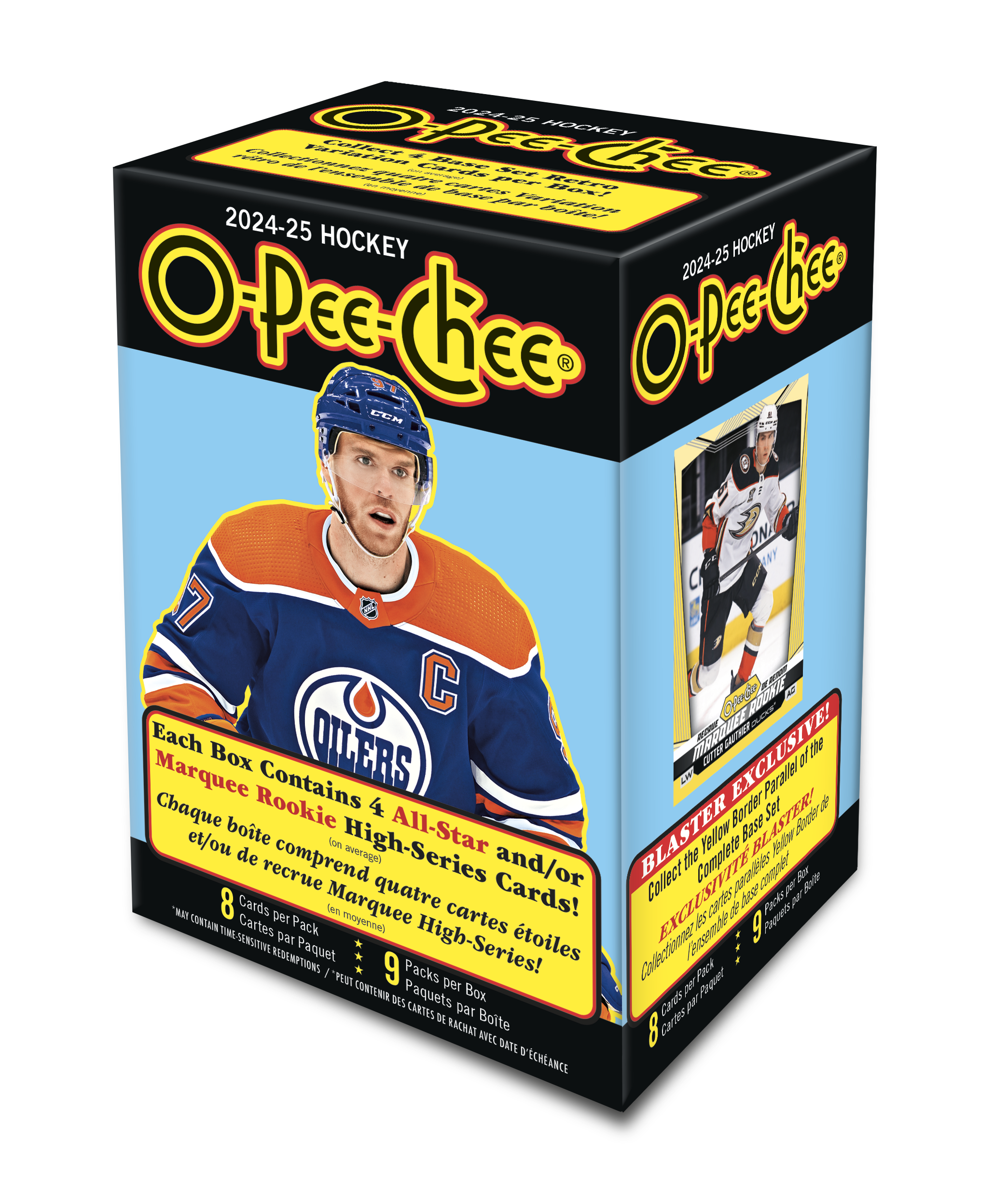 • O-Pee-Chee boasts a comprehensive 600-card base set which includes a 100-card high-series subset featuring only 2023-24 All-Stars and 2024-25 Marquee Rookies. Every box contains, on average, four (4) All-Star and/or Marquee Rookie cards!