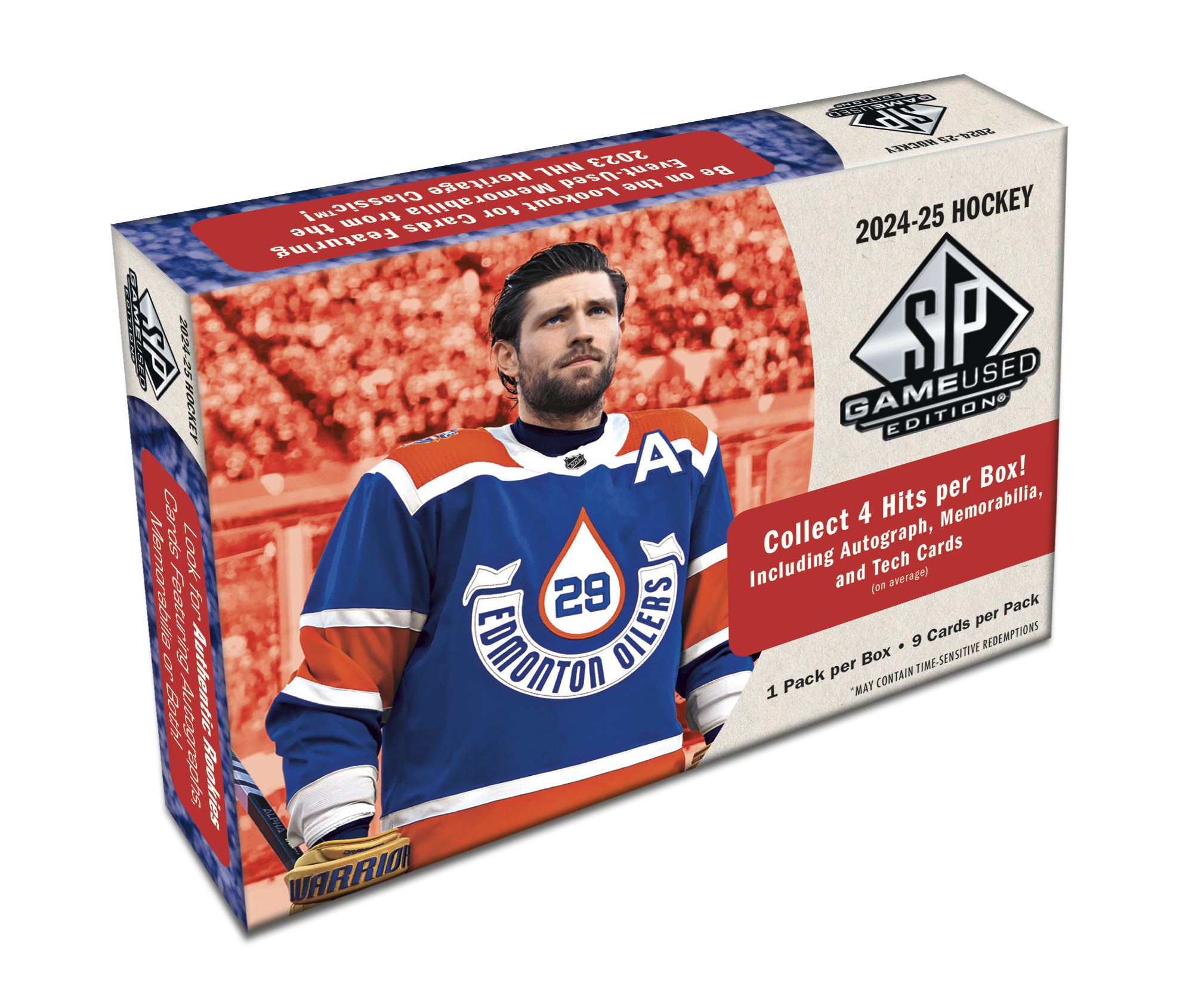 SP Game Used Hockey is back with an abundance of event and game-used memorabilia! Look for cards featuring jersey, banner, net cord and/or puck material from the NHL Stanley Cup Playoffs, NHL Global Series, NHL Stadium Series, and the NHL All-Star weekend. This set also features game-used jersey swatches, patches and other unique memorabilia pieces.