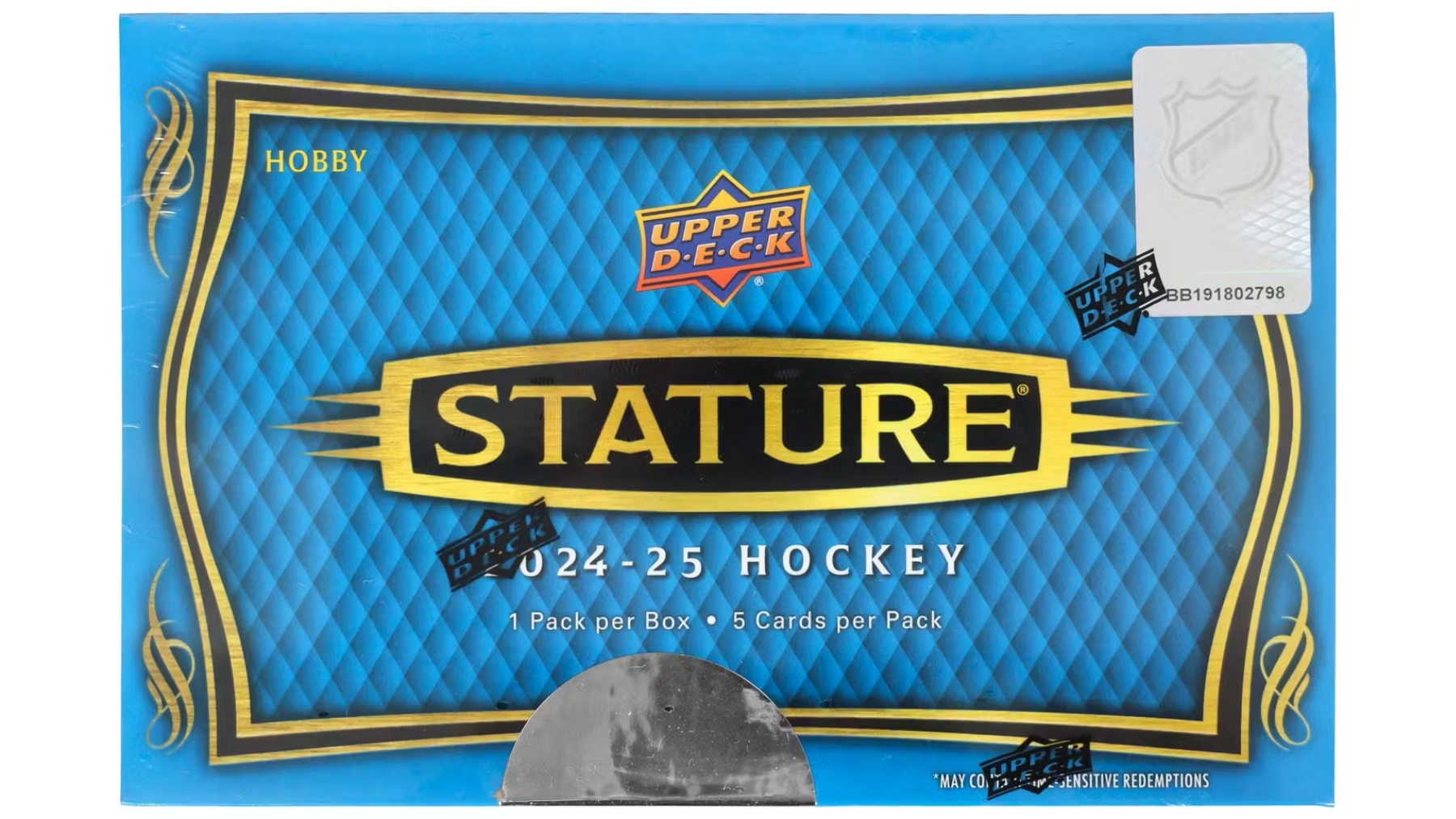 Collector-favorite Stature Hockey - with its elegantly-designed, thick premium stock cards - is back!! Sporting a bevy of hard-signed autographs and a wide variety of premium memorabilia, 2024-25 Stature will appeal to high-end, autograph, rookie and player collectors alike. The latest edition of Stature Hockey also contains both 2023-24 and 2024-25 cards - with each season boasting a unique design - and the product consists solely of the Base Set and a multitude of tantalizing parallels.