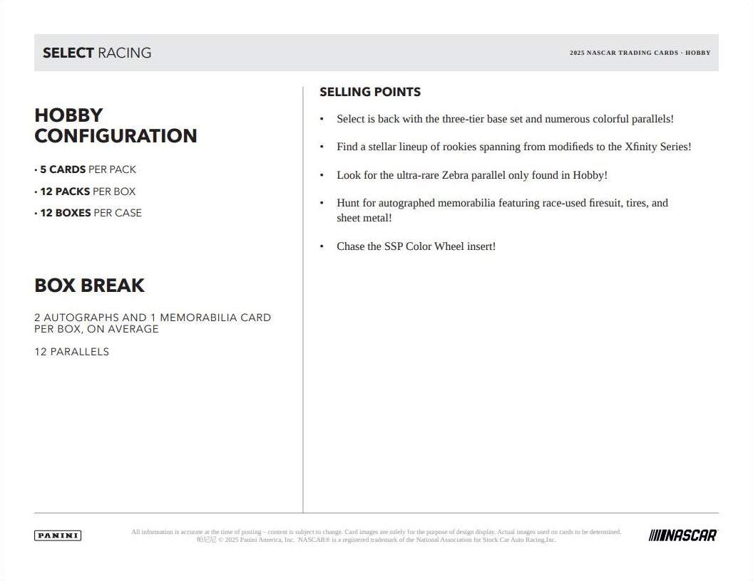 2025 Panini Select Racing Hobby Box