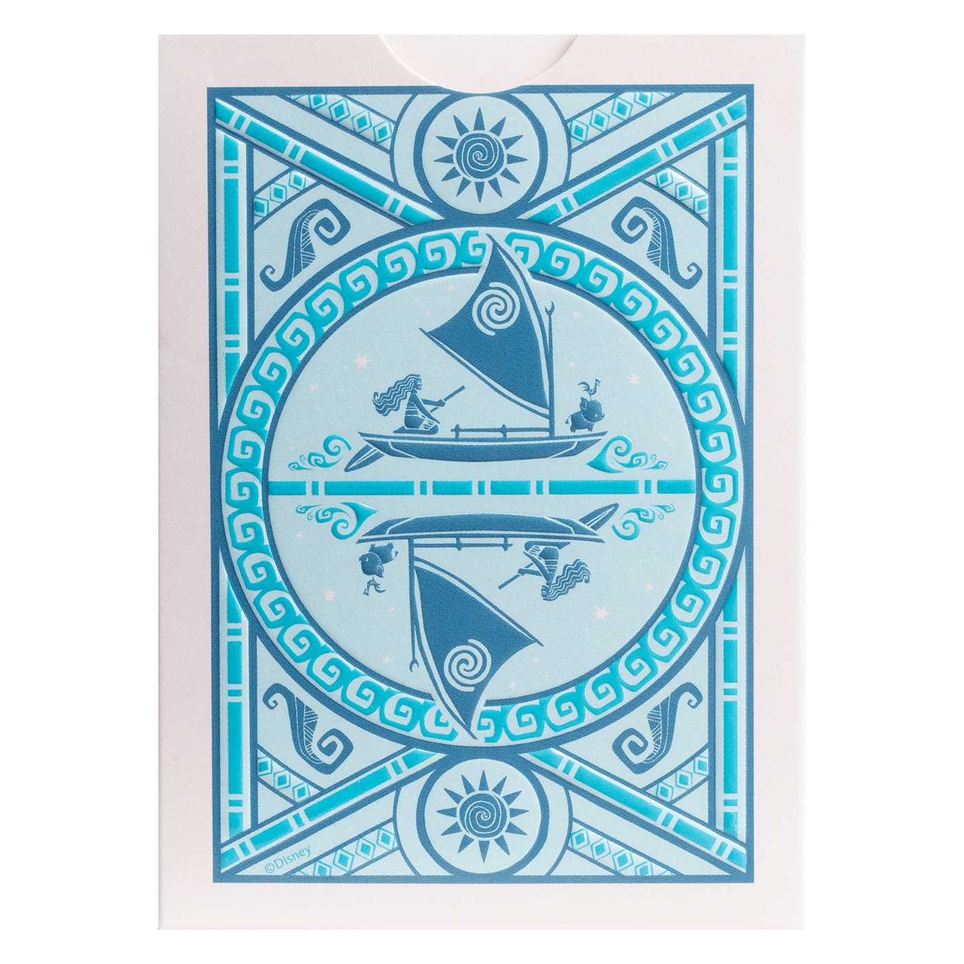 Take your next game night on a sea bound adventure to Te Fiti with Disney Moana Inspired Playing Cards by Bicycle! Inside your will find Moana, Maui, along with "boat snacks" Hei Hei the chicken and Pua the pig!