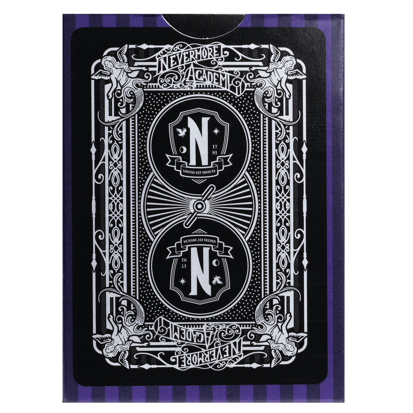Step into the shadowy world of Nevermore Academy with Bicycle Wednesday Playing Cards! Inspired by the hit Netflix series starring Jenna Ortega as Wednesday Addams; your next card game is all-in for the thrilling dance with the macabre as you shuffle through the inky black cards featuring fan-favorite characters from the show.