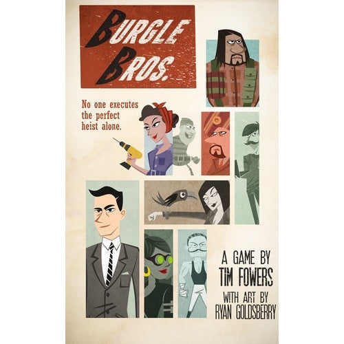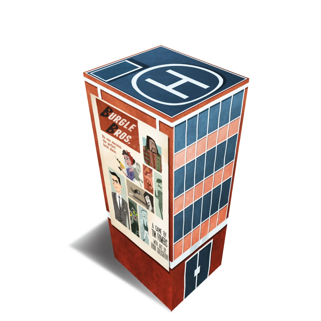 Burgle Bros. is a cooperative game for 1-4 players. Players are unique members of a crew trying to pull off a robbery of a highly secure building — without getting caught. The building has three floors (4x4 tiles), each with its own safe to crack. Players start on the first floor and have to escape to their helicopter waiting on the roof.