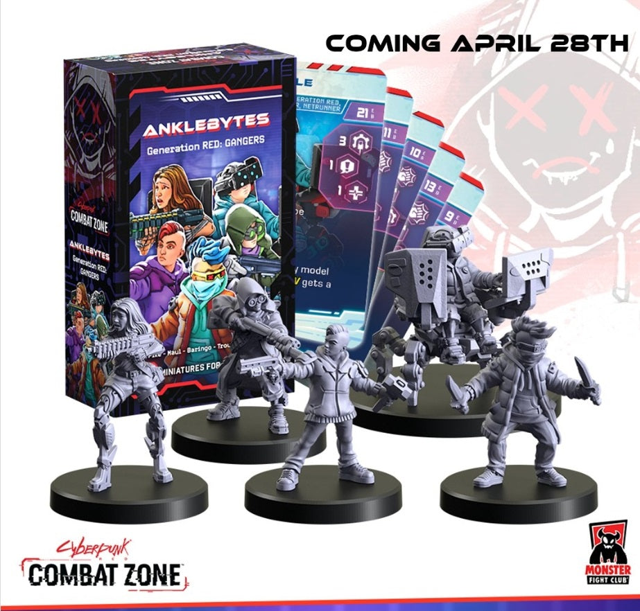 The Anklebytes aren't afraid to take more screen time by force! Led by Trouble in his custom U-Rig with its powerful TRBL3 Pulse that kicks out Hacked tokens, these little monsters put their Netrunner front and center. He's protected by Spike (who can Melee against your Reflexes) and Pike (who can shoot at your Melee), which makes them able to target their enemies' vulnerabilities as a pair. Maul gets a free action when critting, which can make for a very deadly activation once tokens start turning red. And to round out the group, we have Baringo, who combines cyberstilts with a shotgun to parkour into position for Torrent attacks.