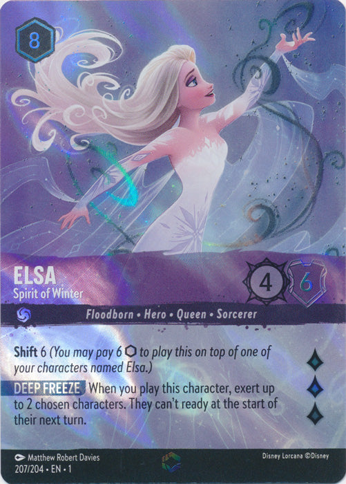 Elsa (Spirit of Winter) - 207/204 - Enchanted is available at 401 Games Canada! You can find lots of other Disney Lorcana Singles products as well as more great items from The First Chapter