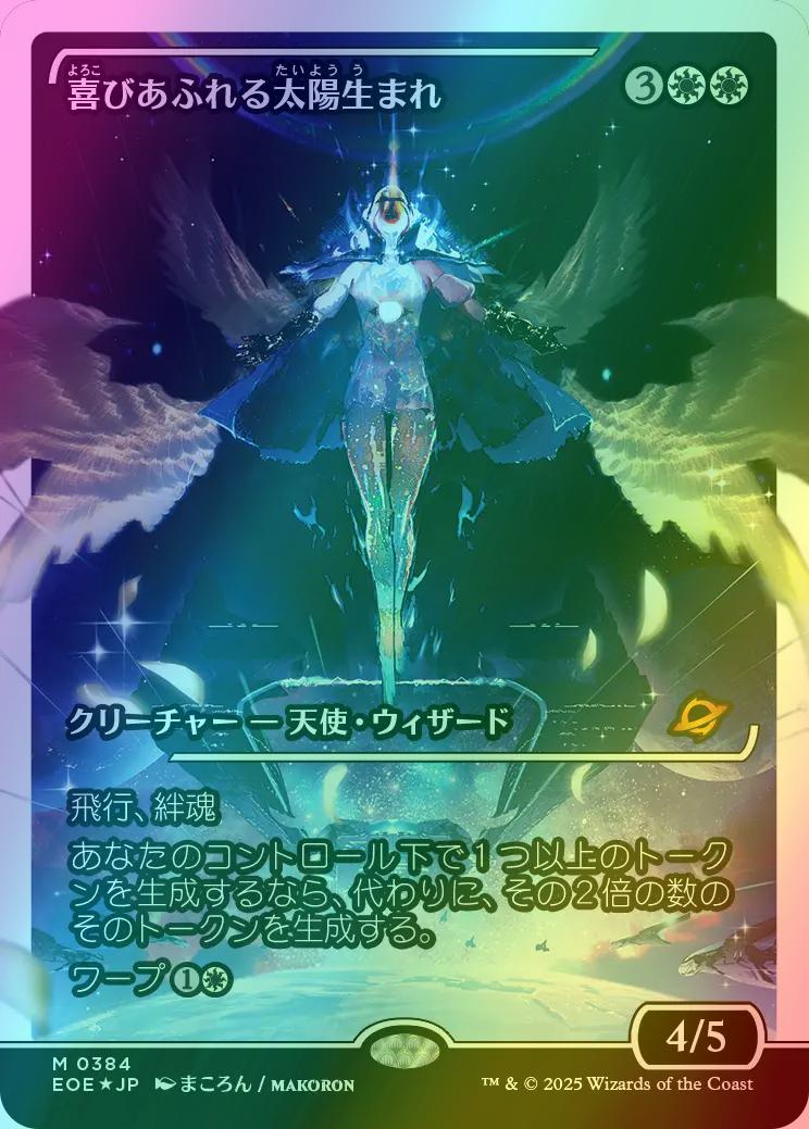 Exalted SunbornCasting Cost: Card Type: Creature - Angel WizardPower/Toughness: 4/5Card Text: Flying, lifelink If one or more tokens would be created under your control, twice that many of those tokens are created instead. Warp (You may cast this card from your hand for its warp cost. Exile this creature at the beginning of the next end step, then you may cast it from exile on a later turn.)Artist: Makoron