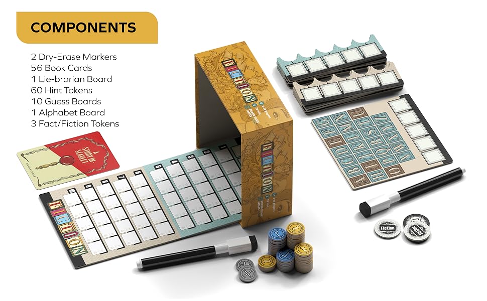 Fiction is a Wordle-inspired game of deception. One player is the Lie-brarian and will choose a secret word from a classic work of literature. The other players will, as a team, use logic and literacy to deduce the secret word as quickly as possible.