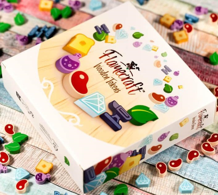 Upgrade your game with these deluxe Flamecraft: Wooden Resources - 2nd Printing! Crafted by the dragons of Flamecraft, these custom-painted and silk-screened goods will enchant your town!