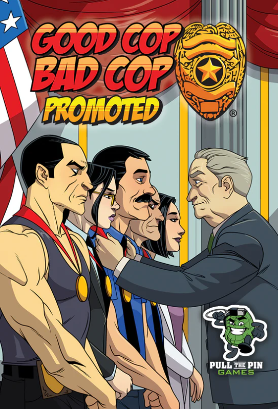 The Promoted expansion to Good Cop Bad Cop® allows you to play a series of games and earn medals for your heroism during each one. Those medals are used to get promotions in the next game. Each promotion provides a unique action you can take on your turn that no one else can.