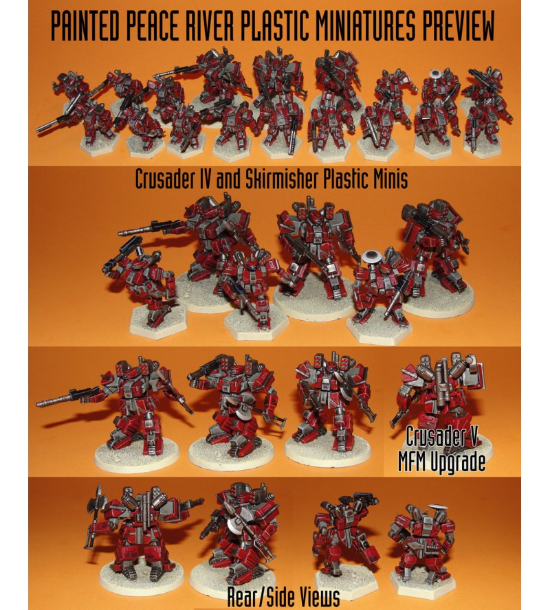Peace River Plastic Miniatures Army includes 18 plastic miniatures with lots of extra weapons and parts on the sprues, plus black plastic hex or round bases. Painting and Assembly Required, decals not included.