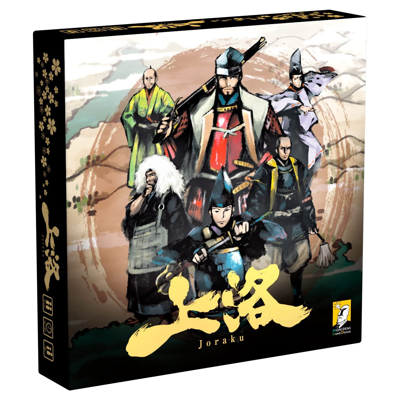 Joraku is a trick-taking area control game. Outwit your opponents with tactical card play, use your loyal Samurais to bid control of areas and build prestige. Only the Daimyo with the highest reputation and the biggest stick can rule Japan!