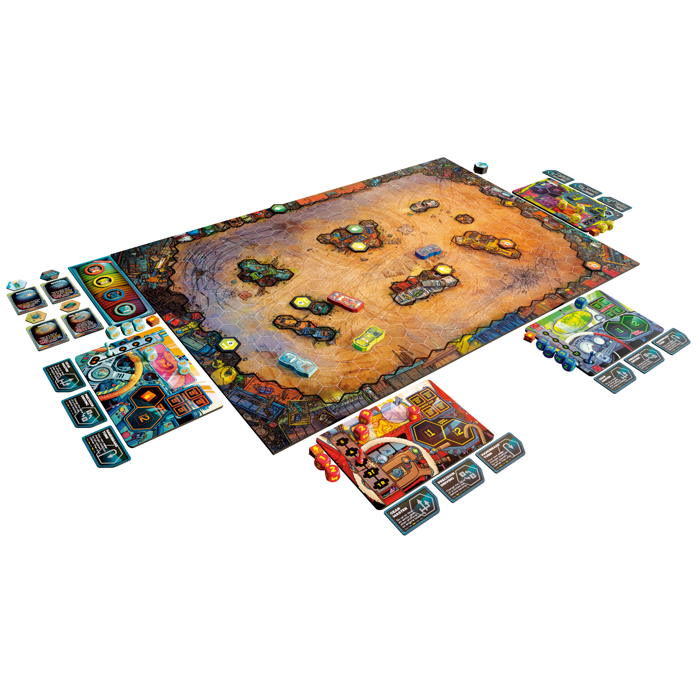 Manipulate dice on custom dashboards, pushing your luck to pull ahead. Litter the track with volatile items and cross checkpoints from any direction, even if it means racing into oncoming traffic! Featuring high quality wooden pieces, multiple track options, and tons of accessories. Create your own unique race course and race for supremacy! The fastest route to the finish is through everyone else.