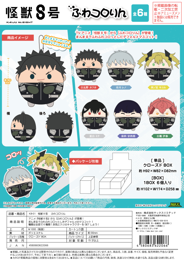 Kaiju No. 8 FUWA KORORIN plush mascot blind box