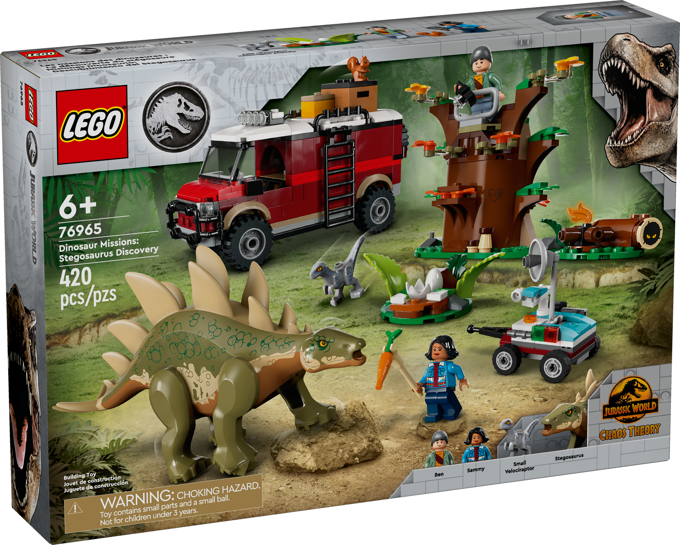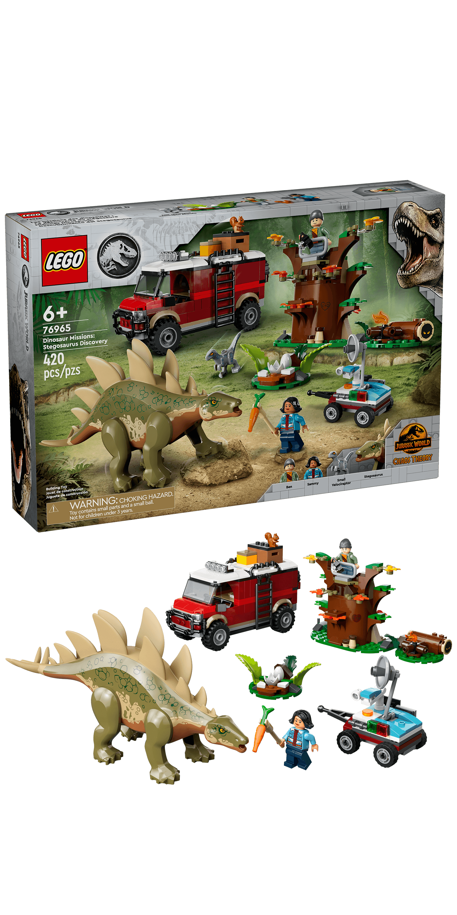 - Creative adventure toy – Features a molded LEGO® Stegosaurus with movable legs, a small Velociraptor figure and Ben and Sammy minifigures to spark role play and stories