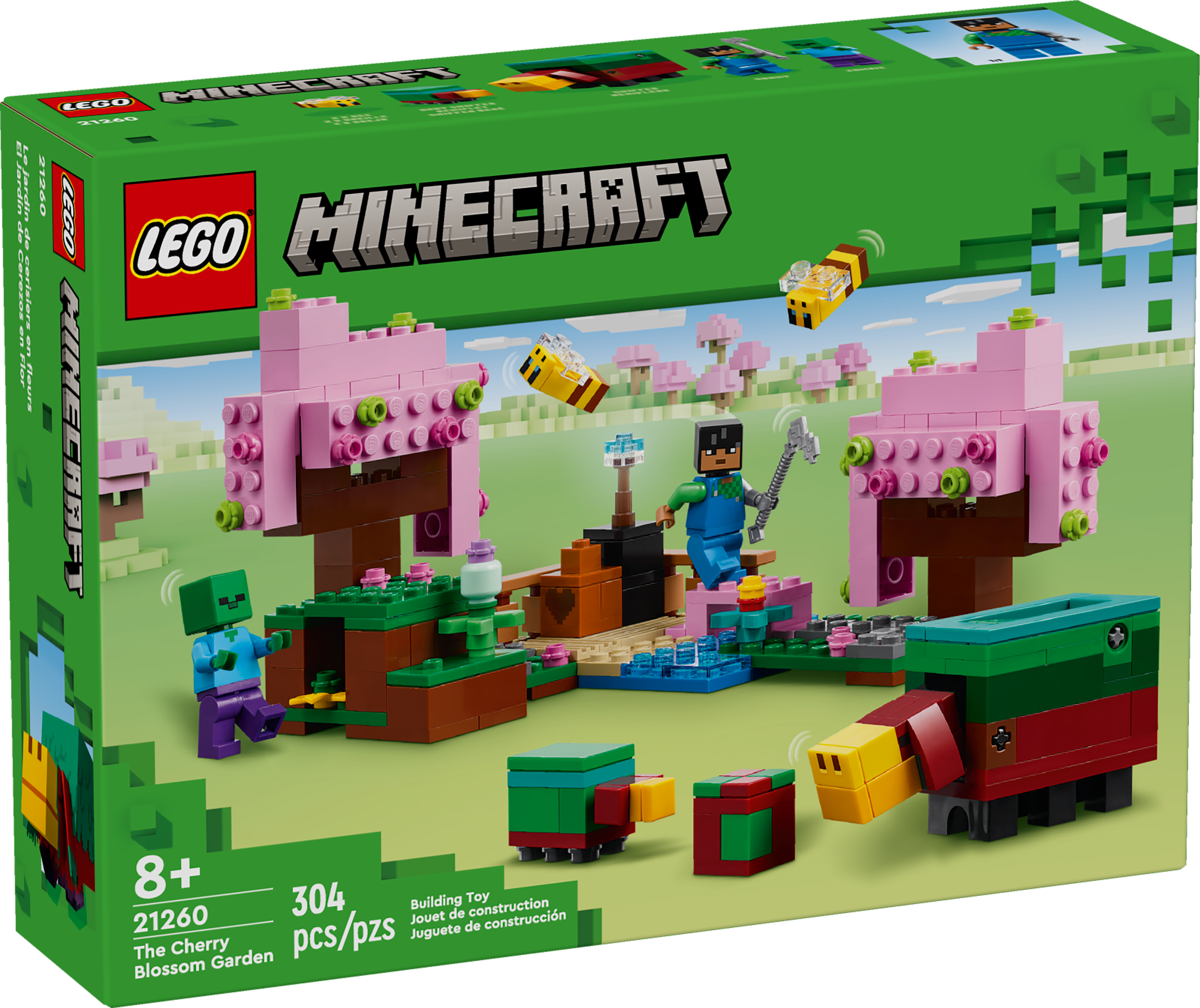 The Cherry Blossom Garden (21260) is a hands-on video gaming toy and the first LEGO® set to include figures and features from the Minecraft® Cherry Blossom biome. It makes a great gift for players of the Minecraft video game and kids aged 8 and upwho enjoy nature and animal playsets – and battling zombies!