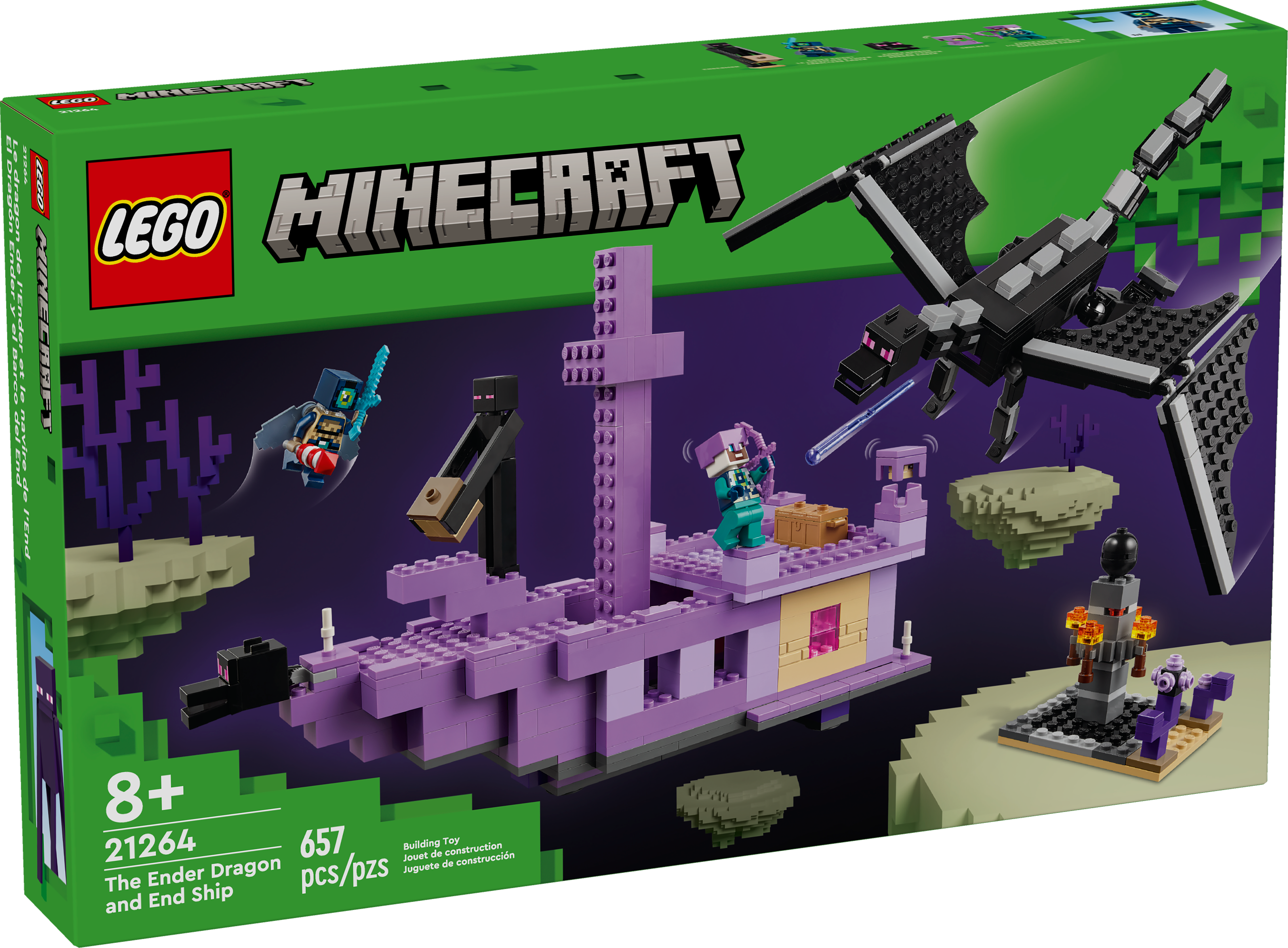 - The Ender Dragon and End Ship – This LEGO® Minecraft® video-game building toy for boys and girls aged 8+ is packed with Minecraft figures so kids can act out dragon action and adventures aboard a ship