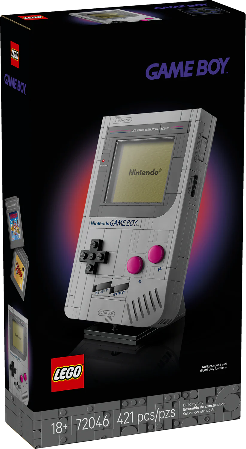 Recapture the excitement you felt when you first played on the Game Boy™ with this LEGO® model building kit for adults (72046). A fantastic gift for fans of Nintendo® video games, the collectible set features a near 1:1 scale brick-built replica of the original Game Boy handheld game system from Nintendo. Press the +Control Pad, A and B Buttons, and SELECT and START, just like on the real system. And the model has other iconic Game Boy details, including the contrast adjustment and volume dial and the Game Pak slot.