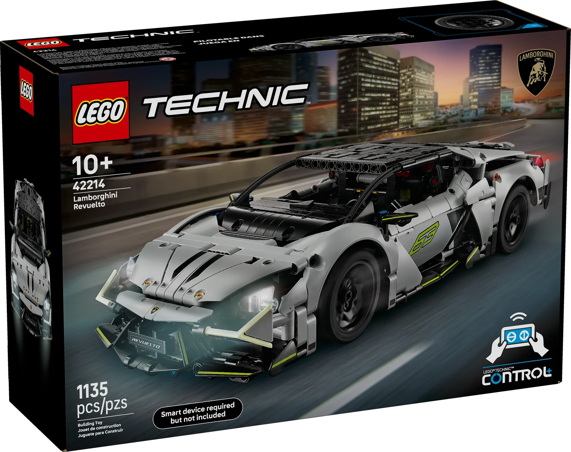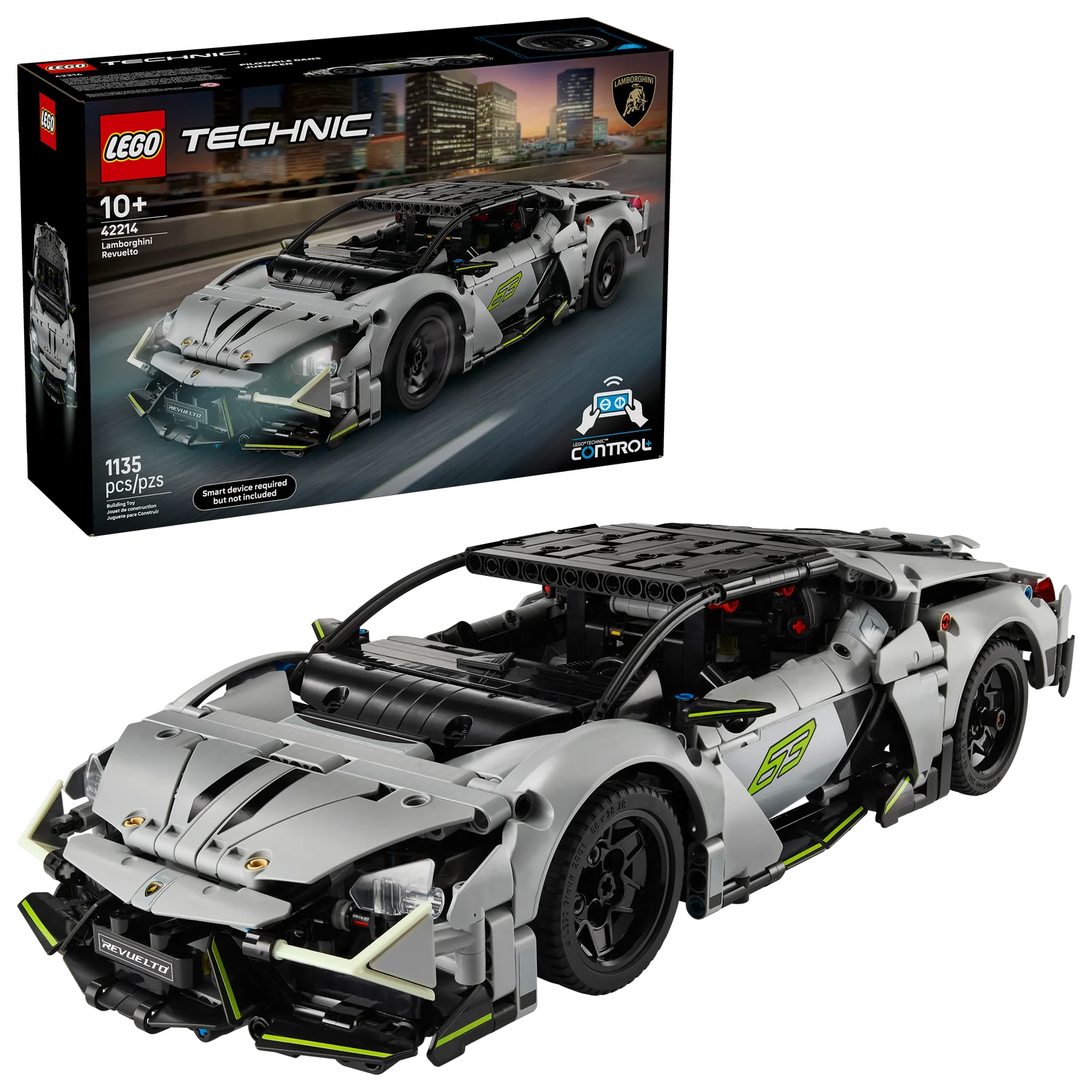 Inspire kids to build a detailed model version of the stunning Lamborghini Revuelto Super Sports Car with this LEGO® Technic™ STEM building toy (42214) for boys and girls aged 10 and up. With features inspired by the real-life car, this model includes an engine cover and cool glow-in-the-dark headlight details. Meanwhile, the sleek design is sure to impress any Lamborghini super fan. But the build is just the start with this fast-action set. Access the CONTROL+ app to steer the car, control the lights and see live data feedback from the app’s cockpit screen as kids perfect their driving skills.