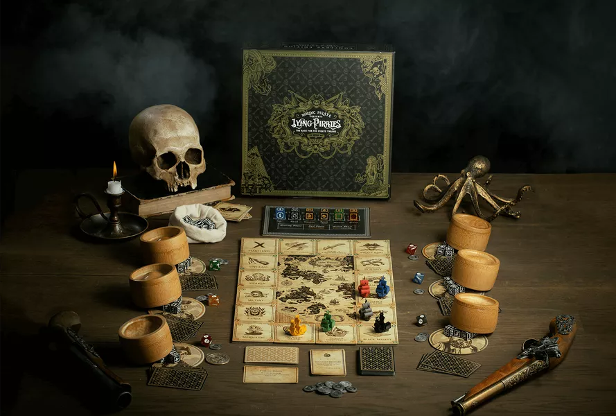 Lying Pirates is a first to finish fast-paced dice game for 2-4 players (+2 with expansion)